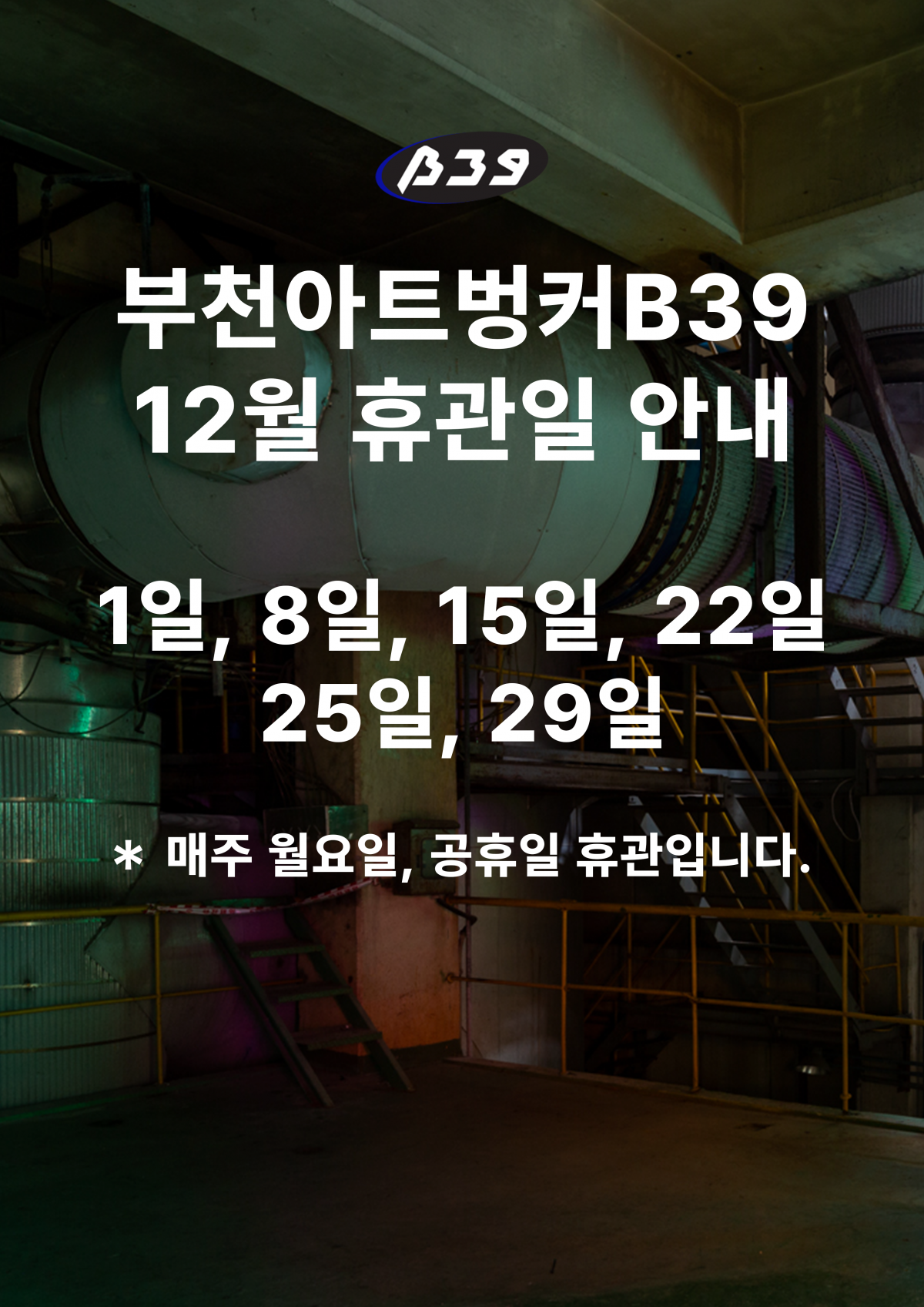 부천아트벙커B39 12월 휴관일 안내