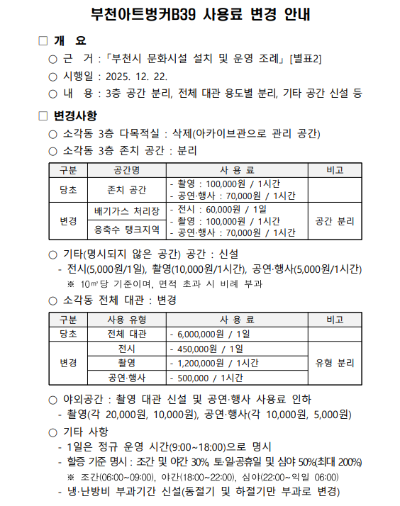 시설사용료 변경안내 (25.12.22. 시행)
