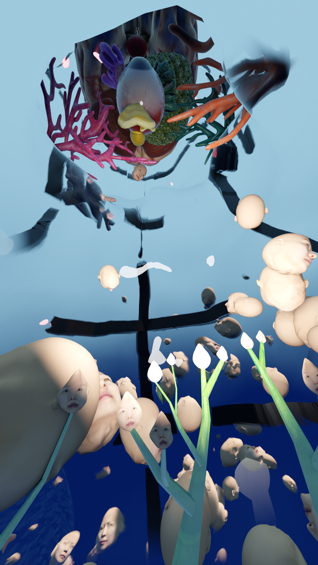 김대천은 컴퓨터를 활용하여 몸-기억-공간을 매체로 구현하는 시적 이미지를 탐구한다. 절차생성적 3D 모델링 알고리즘 작업으로 영상을 제작하여 미디어파사드, 프로젝션맵핑 전시를 수행해오며, 디지털 공간 속 건축적 상상력을 실험해왔다. 건축학을 전공한 그는 인류세의 흔적, 인간의 골격구조나 자연의 불규칙한 변화에 이르기까지 광범위한 영역에 관심을 둔다. 발견된 대상과 건축 메커니즘과의 연결점을 찾아내고, 이를 3D 모델링 기법과 접목하여 자연과 건축을 잇는 새로운 시각 언어를 시도한다. 이렇게 김대천의 가상세계에서는 문명과 야생의 경계 지점이 포착된다. 작업은 구조와 움직임, 기술과 시적 상상력이 교차하는 지점에서 현대적 공간 경험을 확장한다.