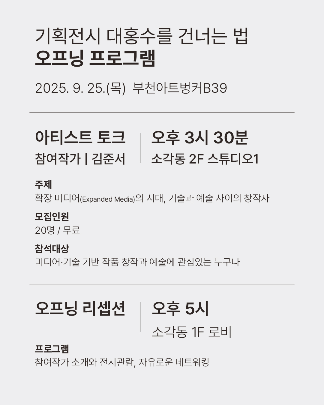 서울익스프레스(전유진, 홍민기)는 미디어를 기반으로 한 설치와 퍼포먼스를 통해 서사의 새로운 형태를 탐구한다. 조형, 사운드, 움직임을 유기적으로 엮어 총체적인 이미지를 만들고, 기술은 도구를 넘어 동시대적 맥락을 담는 언어로 활용한다. 서울익스프레스 작업의 비서사적인 텍스트, 추상적 움직임, 분절된 장면, 그리고 완전히 통제되지 않는 연출 방식은 관객 및 감상자가 직접 이야기를 구성해 나가도록 유도한다. 감상자의 사유화된 역사적 경험이 창작의 의도와 수평적 관계로 존재하도록 안내하며, 이를 통해 새로운 서사 실험의 가능성을 제시한다. 서울익스프레스는 기술에 대한 맹목적 환상, 현실의 경험을 가상으로 온전히 대리할 수 있다는 믿음과 같은 기술지상주의를 ‘강제된 환상’이라 지칭하며 경계한다. 기술을 작품의 본질과 의도, 서사와 사유를 잘 드러낼 수 있는 새로운 매체이자, 조력자로 위치시키고 있다.